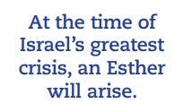 “At the time of Israel’s greatest crisis in the coming years, an Esther will arise. She will come out of obscurity. People will ask, ‘Where did she come from?’ I have sent her and anointed her to impact the destiny of the nation. She will break barriers and tradition, and she will arise to the highest office of the land. Yes! A woman will stand in the office of Prime Minister in Israel. And she will be raised up to save a people from great calamity.”