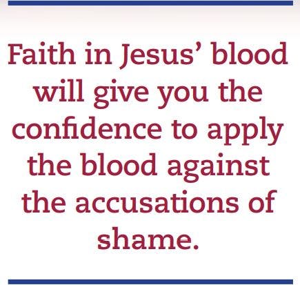 Faith in Jesus’ blood will give you the confidence to apply the blood against the accusations of shame. The blood of Jesus will help you see yourself pure, cleansed, and holy in the sight of God. The boldness to enter God’s presence is by the blood of Jesus, so spend time honoring the blood by studying what the Bible says about it. Hebrews 10:19 (KJV) says, “Having therefore, brethren, boldness to enter into the holiest by the blood of Jesus….”