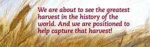 We are about to see the greatest harvest in the history of the world. And we are positioned to help capture that harvest!
